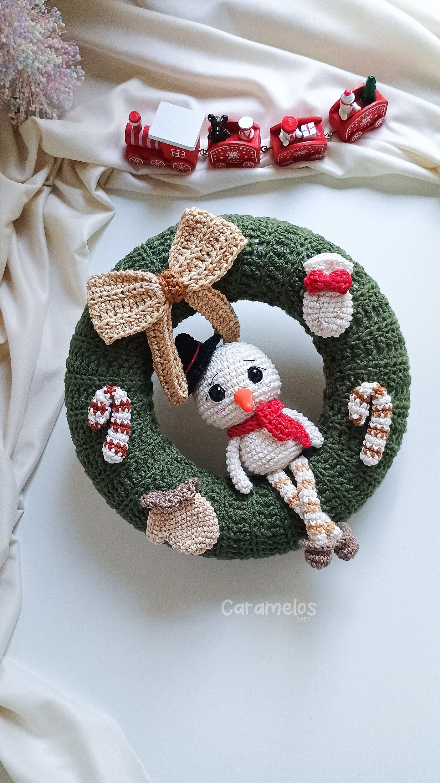 Nossa Guirlanda de Natal em Amigurumi é produzida ponto a ponto com muito cuidado, trazendo aconchego, fofura e um toque único para o seu lar durante as festividades.